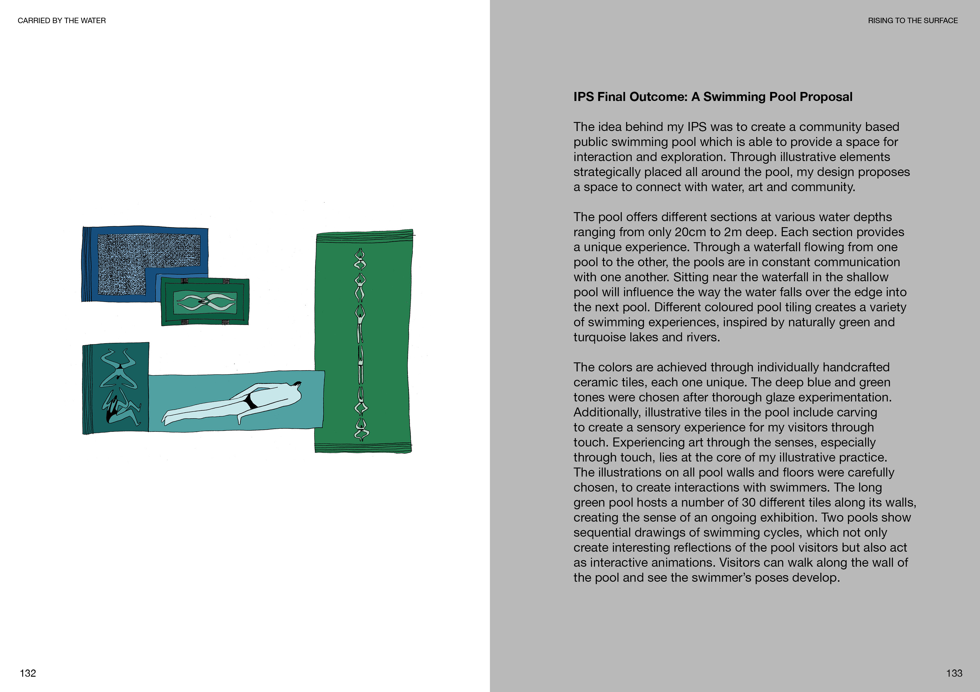 A personal art process book, written, designed and illustrated by me. The book flows like water and each chapter is introduced by an illustration